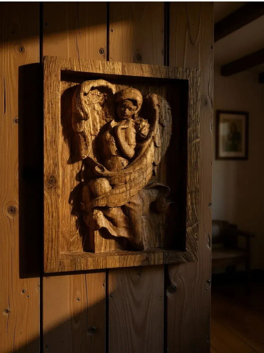 Икона освященная Ангела-Хранителя 14х18см станет настоящим украшением вашего дома, наполняя его атмосферой умиротворения и защиты. Резная из ценного дуба, икона поражает своей изысканной красотой и мастерством исполнения. Образ Ангела-Хранителя, бережно вырезанный из дерева, излучает тепло и добро, создавая ощущение спокойствия и безопасности. Повесьте эту икону в гостиной, спальне или детской, и пусть она станет символом защиты и благополучия для вас и ваших близких.