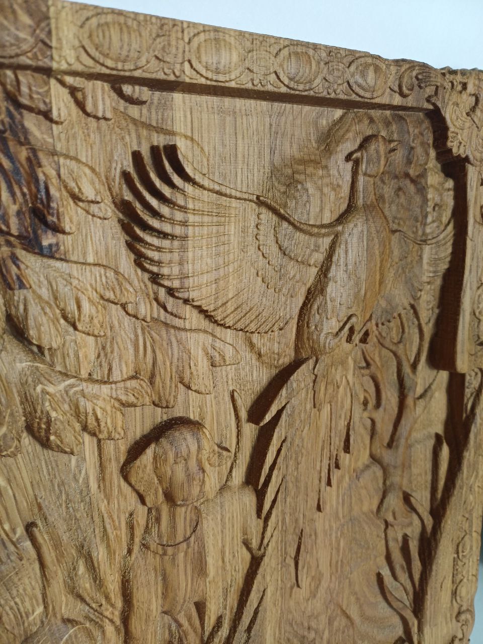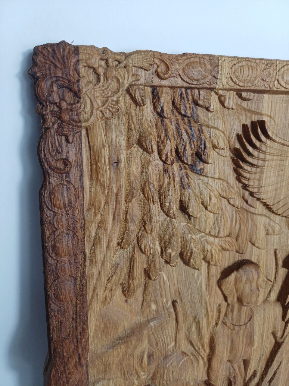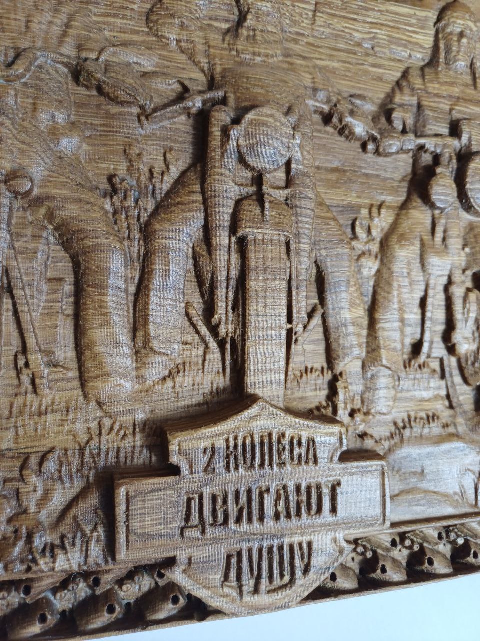 Панно выполнено из ламелей дуба, отшлифовано и обработано маслом и воском.