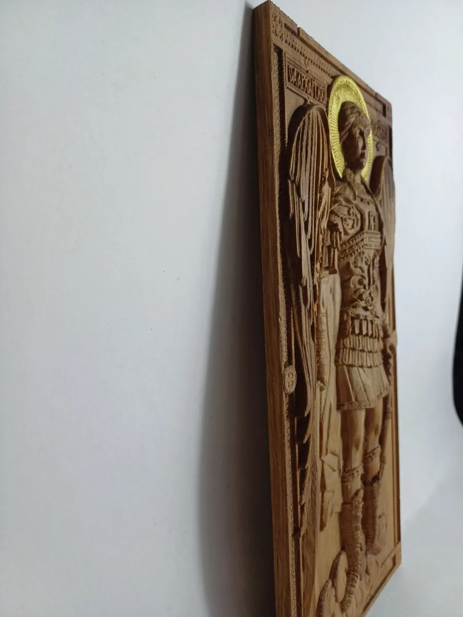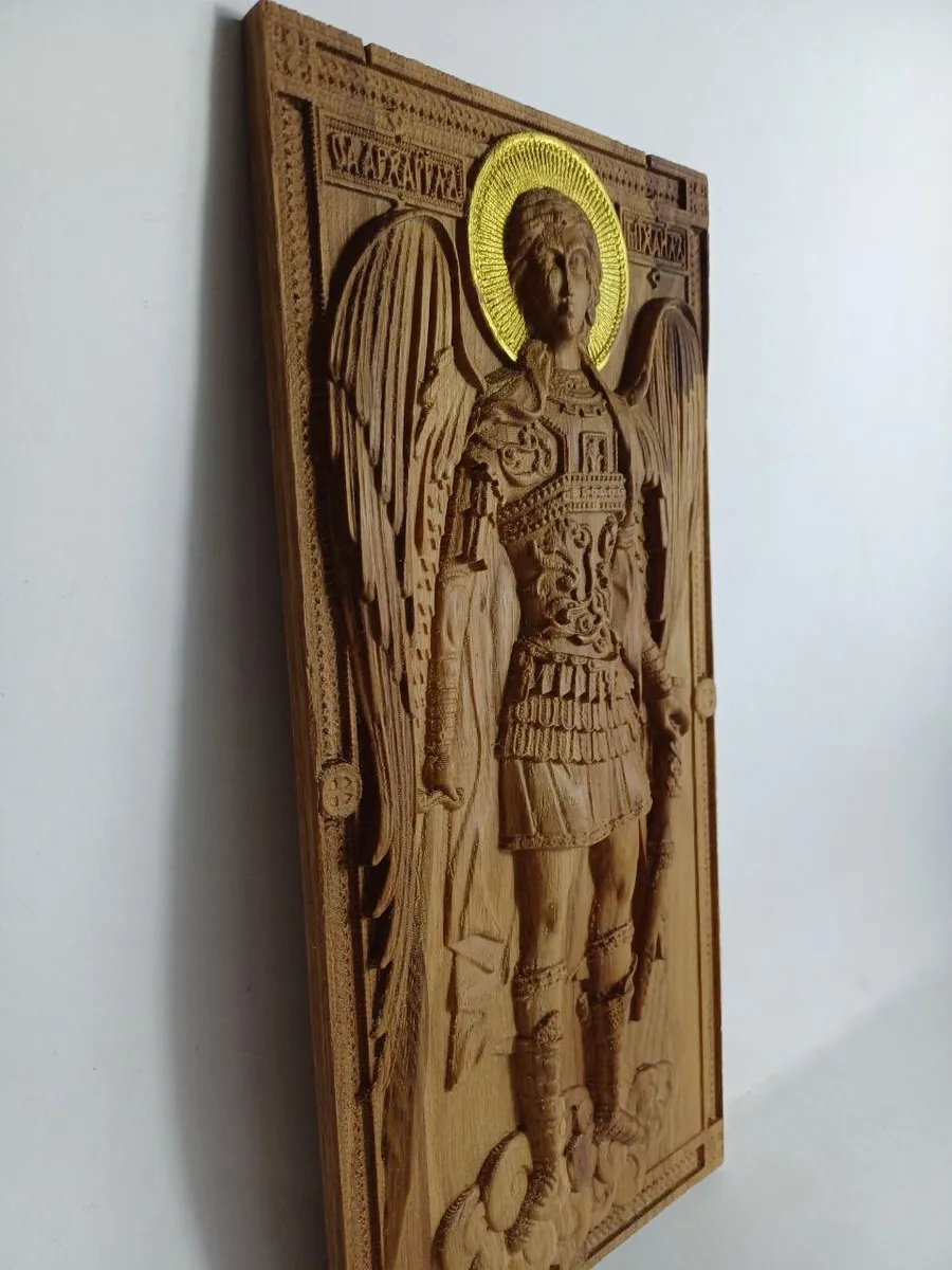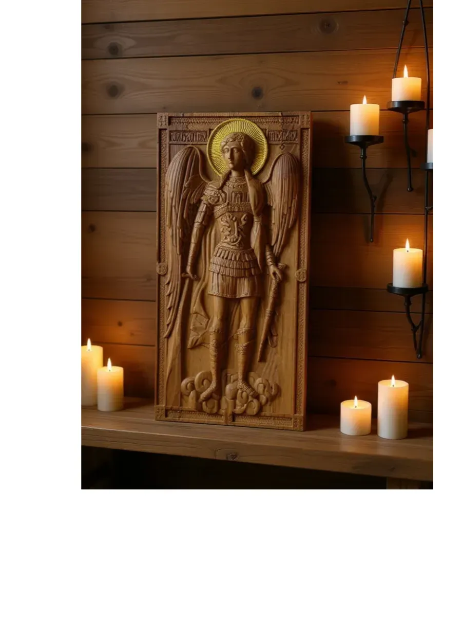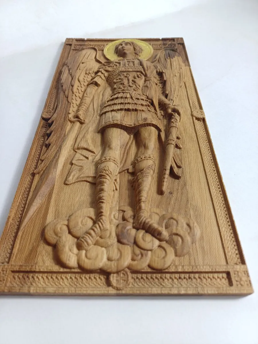 Освященная Икона Архангела Михаила, резная из дуба, станет настоящим украшением вашего дома и источником духовного умиротворения. Эта икона, выполненная из натурального дуба, поражает своей изысканной резьбой и благородным цветом дерева. Размер 28.5х14 см делает ее идеальной для размещения на стене в любой комнате, создавая атмосферу спокойствия и уюта. Икона освящена, что придает ей особую ценность и силу.