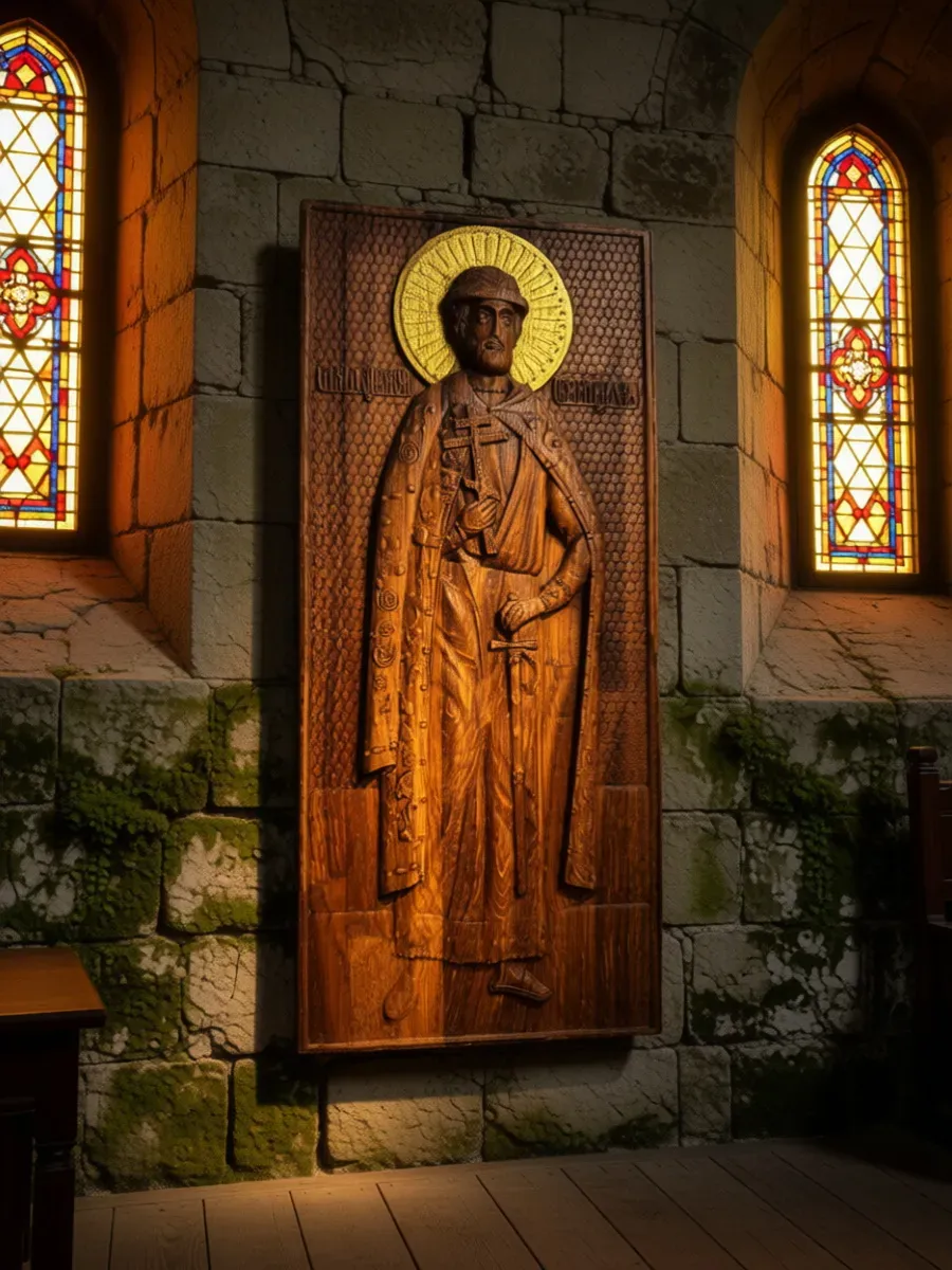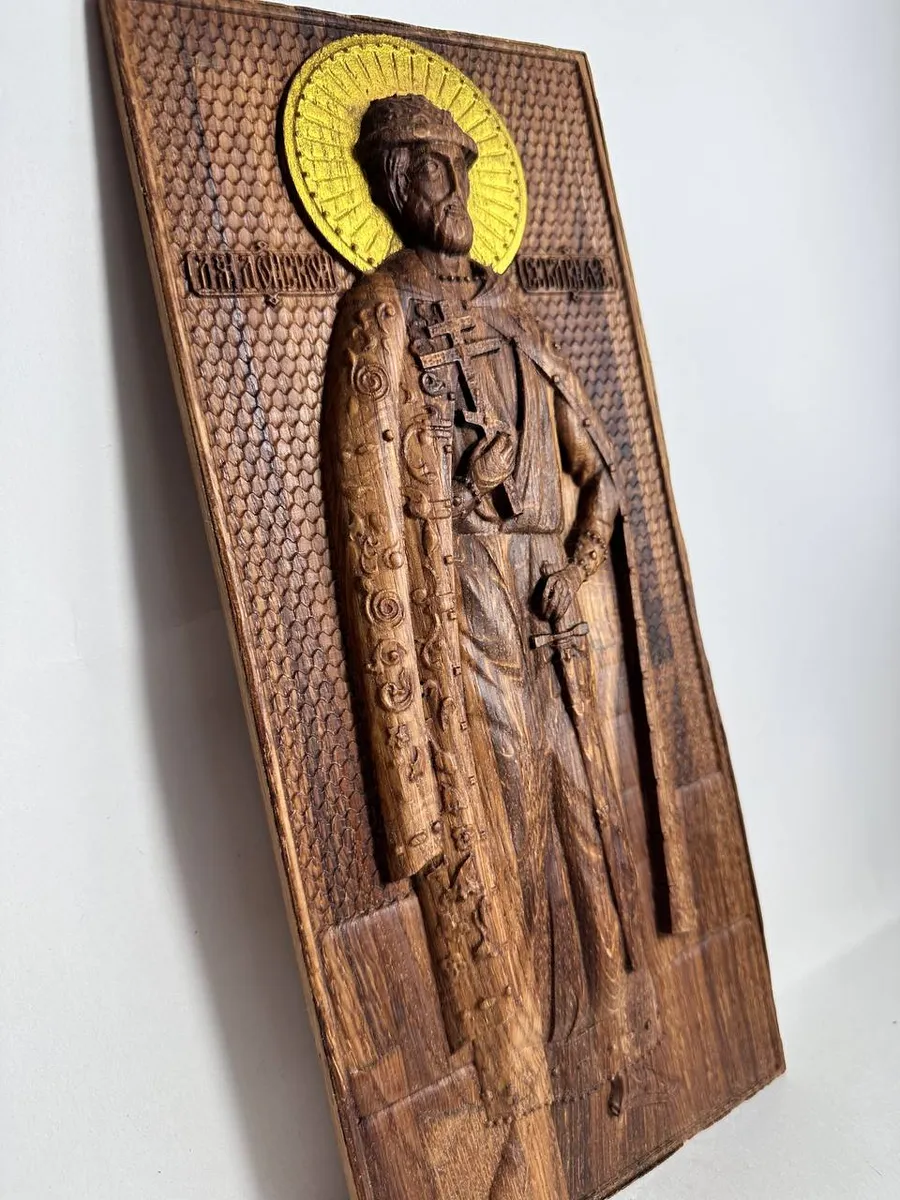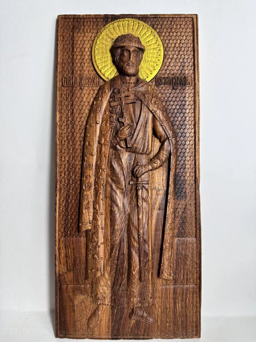 Освященная икона Дмитрия Донского, вырезанная из натурального дуба, станет настоящим украшением вашего дома и символом веры. Ее изысканная резьба и благородный цвет дуба создают атмосферу умиротворения и духовности. Икона, освященная в церкви, наполнит ваш дом светом и теплом, даруя ощущение защищенности и покоя. Размещение этой иконы в интерьере станет не только украшением, но и напоминанием о высоких духовных ценностях. Ее размер 31.5х14 см идеально впишется в любой интерьер, привнося в него неповторимую ауру.