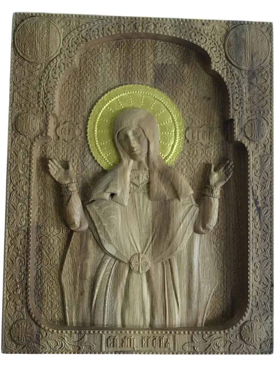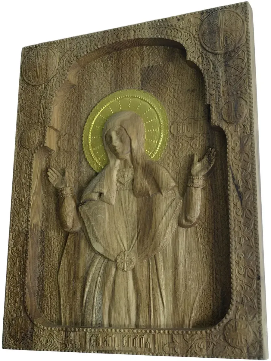 Освященная Икона Мученица София, резная из массива дуба, станет прекрасным украшением вашего дома и символом веры. Эта икона, выполненная из натурального дуба, отличается изысканной резьбой и благородным цветом дерева. Размер иконы 14*17.6 см, что делает ее подходящей для размещения как на иконостасе, так и на полке. Освященная Икона Мученица София станет не только украшением интерьера, но и источником духовной силы, наполняя ваш дом атмосферой умиротворения и благодати. Ее присутствие будет напоминать о мужестве и стойкости святой Софии, вдохновляя на добрые дела и укрепляя веру.