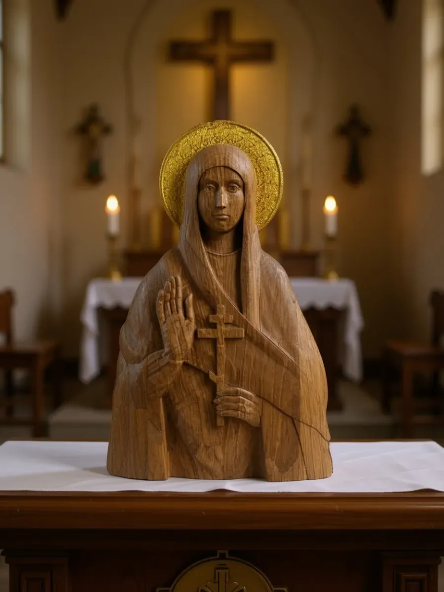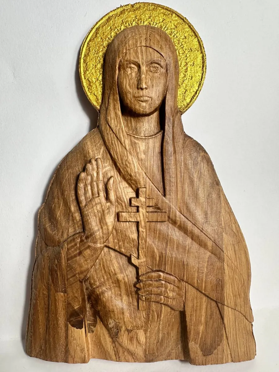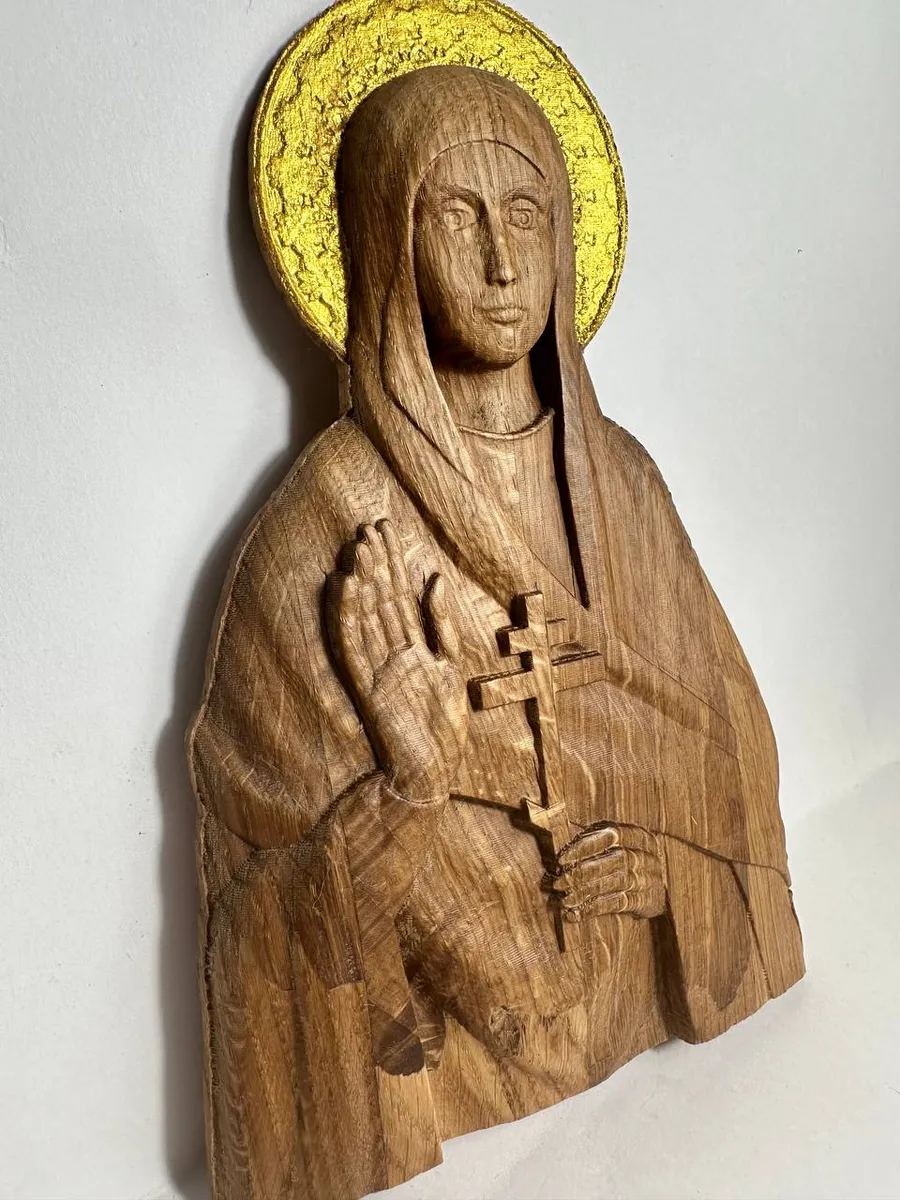 Освященная Икона мученицы Евгении Римской, резная из дуба без рамы, станет настоящим украшением вашего дома и источником духовной силы. Тонкая резьба по дереву придает иконе особую выразительность, а натуральный цвет дуба создает атмосферу тепла и умиротворения. Эта икона не просто украшение, а святыня, способная наполнить ваш дом благодатью и защитой. Повесьте ее в гостиной, спальне или прихожей, чтобы каждый день ощущать присутствие святой Евгении Римской и черпать вдохновение из ее мужества и веры.Значение иконы мученицы Евгении заключается в несокрушимой силе духа, олицетворённой в её образе. Она символизирует силу веры, мученический подвиг, твёрдую решимость отстаивать христианские идеалы, даже ценой собственной жизни.