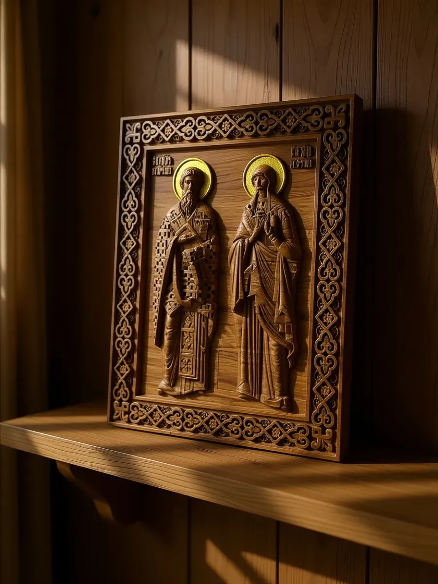 Освященная икона "От сглаза" с изображением святых Киприана и Иустинии станет надежным оберегом для вашего дома. Изготовленная из массива дуба, икона отличается не только своей красотой, но и прочностью. Образ святых Киприана и Иустинии, известных своей сильной защитой от злых сил и сглаза, дарит чувство спокойствия и умиротворения. Икона послужит прекрасным подарком для близких, желающим оберега от негативной энергии.