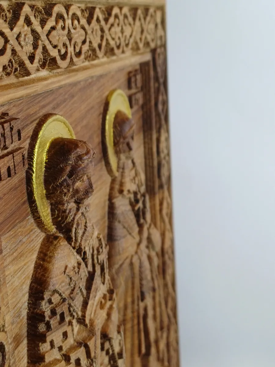 • Оттенок иконы может отличаться от представленного на фотографиях, так как дерево это натуральный и неоднородный материал, каждый брусочек, а соответственно и икона уникальна.