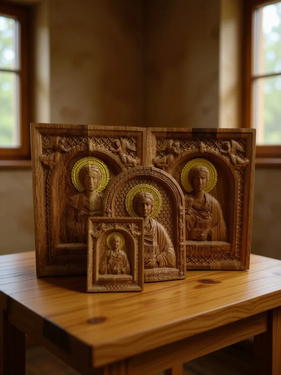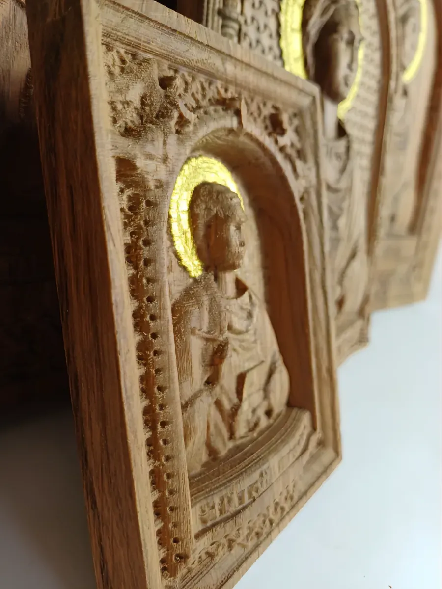 • Оттенок иконы может отличаться от представленного на фотографиях, так как дерево это натуральный и неоднородный материал, каждый брусочек, а соответственно и икона уникальна.