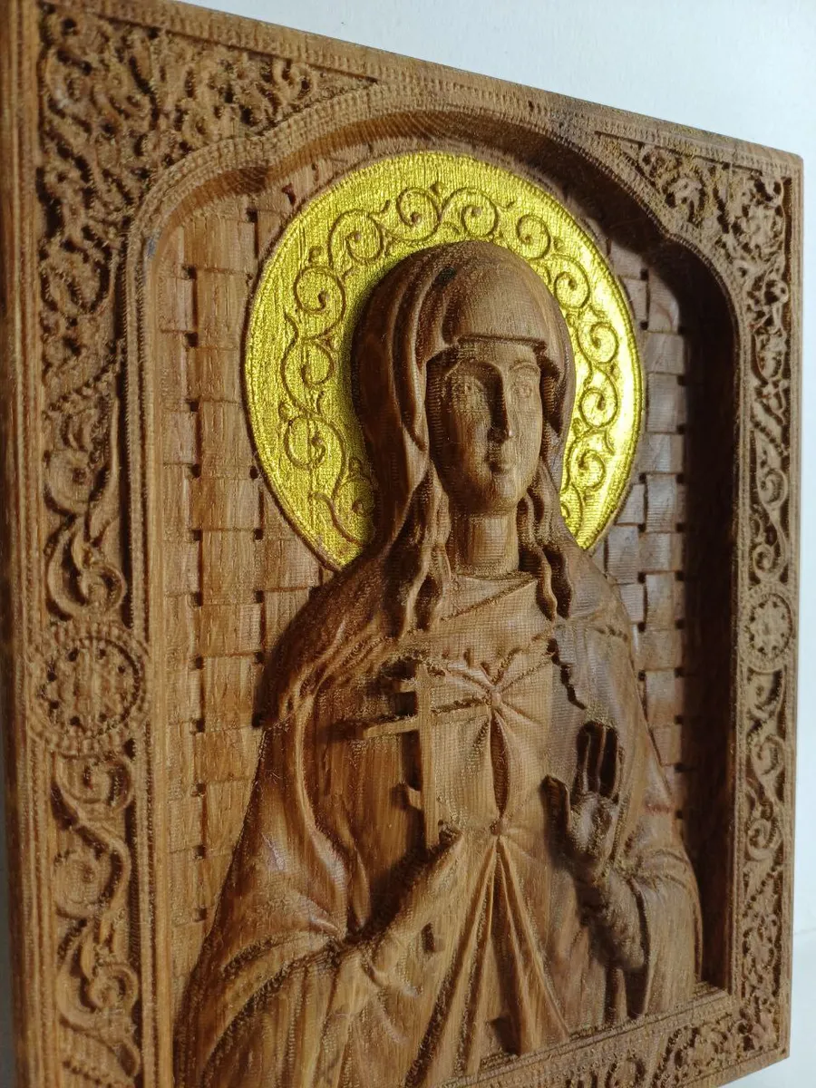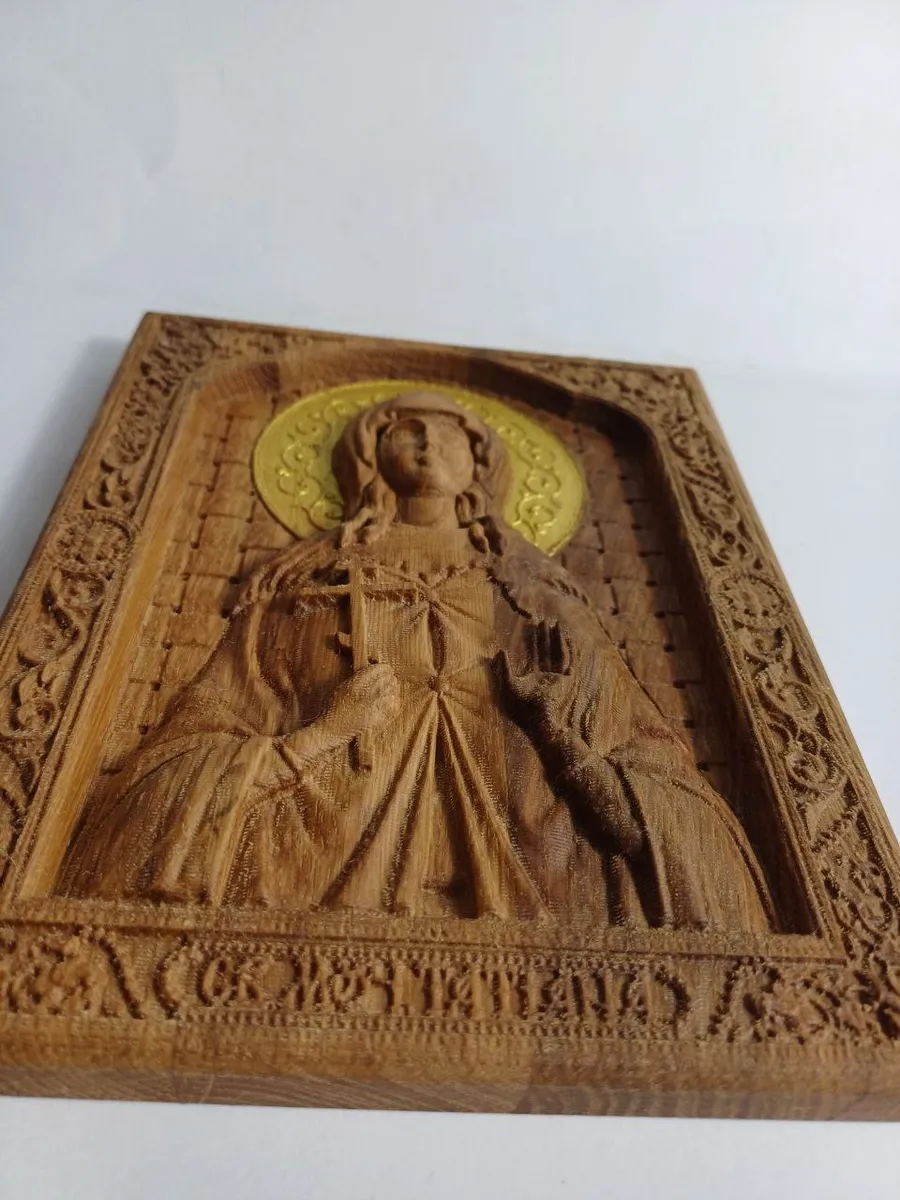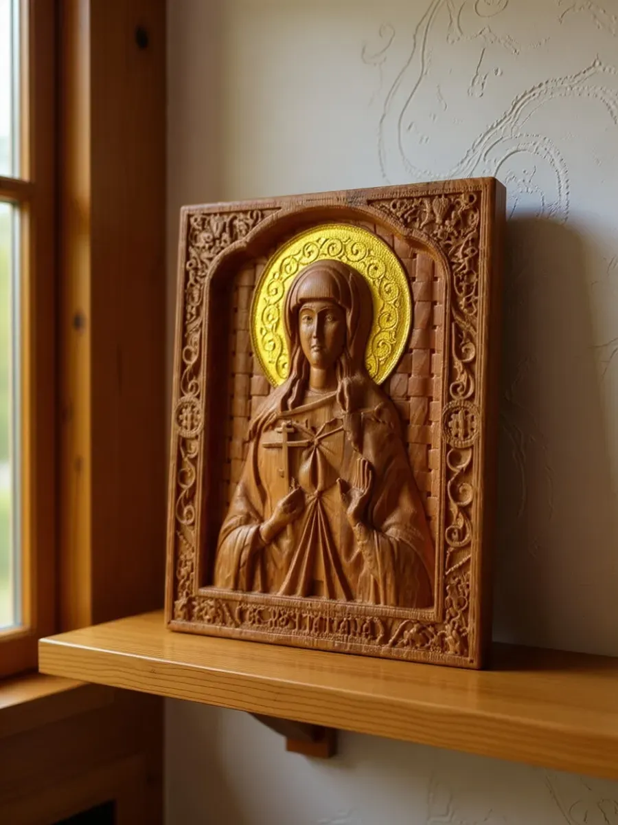 Освященная Икона Св. Татьяны Великомученицы, резная из дуба, станет настоящим украшением вашего дома и источником духовной силы. Ее благородный дуб, обработанный с любовью и мастерством, излучает тепло и уют, создавая атмосферу покоя и умиротворения. Изображение Святой Татьяны, выполненное с филигранной точностью, вдохновляет на веру и надежду, а освящение иконы придает ей особую духовную ценность. Повесьте ее в гостиной, спальне или кабинете, чтобы наполнить пространство светом и благодатью.