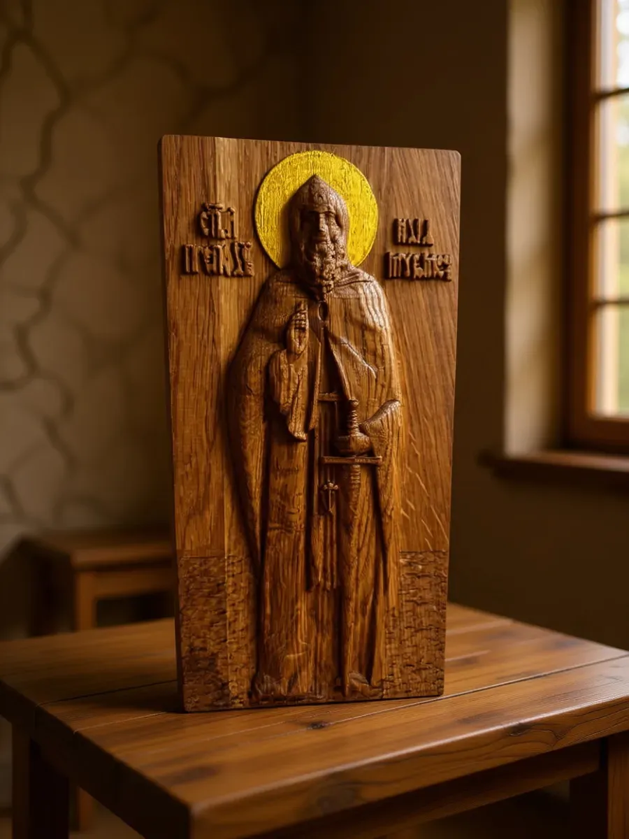 Освященная икона Святого Ильи Муромца из дуба станет настоящим украшением вашего дома, наполняя его атмосферой покоя и благодати. Эта икона, выполненная из натурального дуба, поражает своей красотой и изысканностью. Размер 27х14 см делает ее идеальным дополнением к любому интерьеру, а освящение придает ей особую духовную ценность. Повесьте ее в гостиной, спальне или прихожей, и пусть Святой Илья Муромец оберегает ваш дом и дарит вам мир и гармонию.