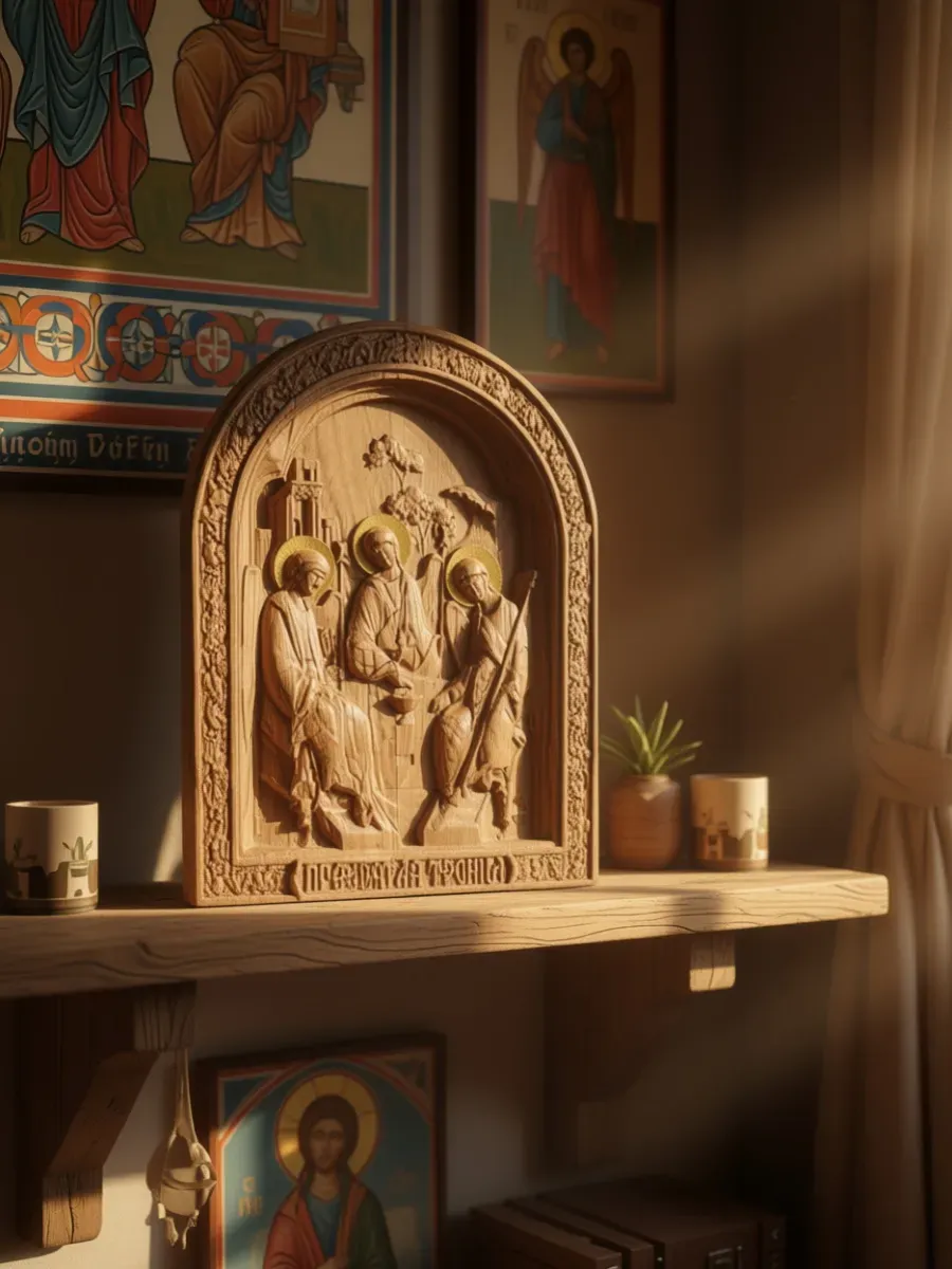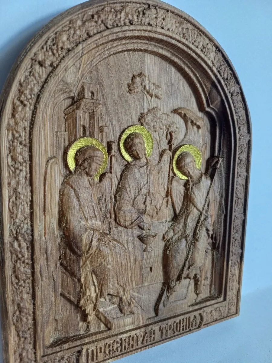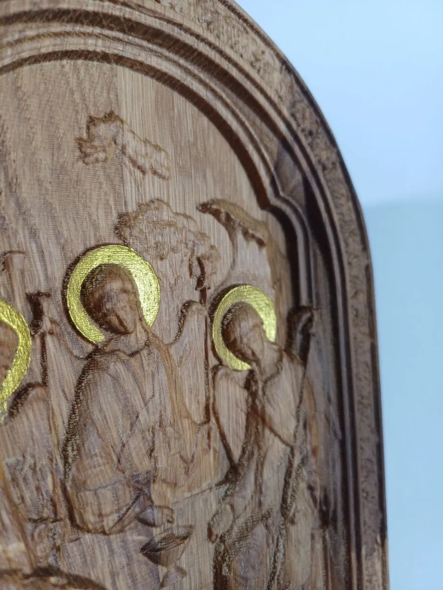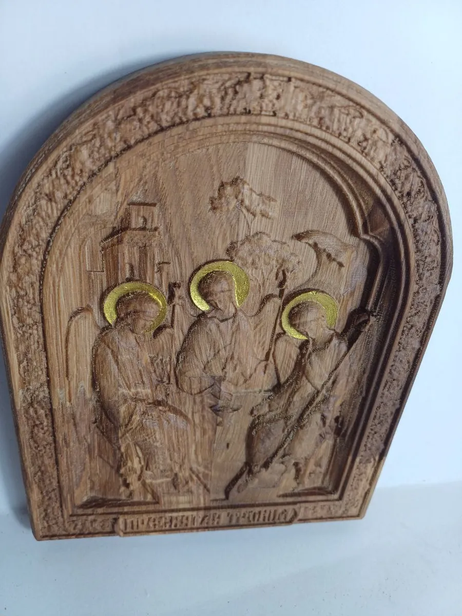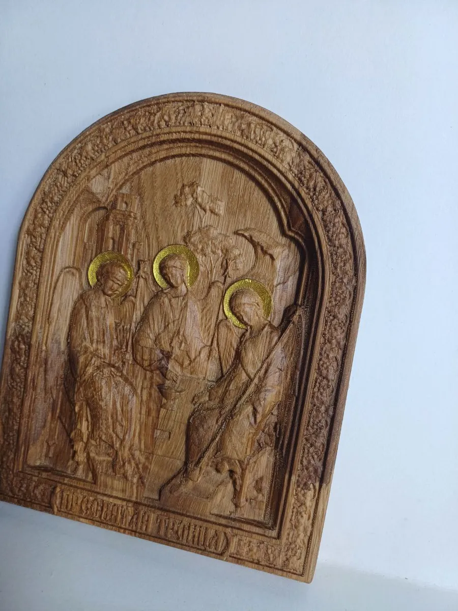 Освященная Икона Святой Троицы станет настоящим украшением вашего дома, наполняя его атмосферой умиротворения и благодати. Эта изысканная икона, резная из натурального дуба, имеет размеры 14х17.5 см и поражает своей детализированной проработкой. Теплый цвет дуба придает иконе особый шарм и создает уютную атмосферу. Повесьте ее в гостиной, спальне или кабинете, чтобы наполнить пространство светом и гармонией.