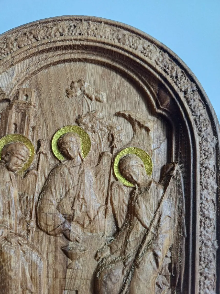 • Оттенок иконы может отличаться от представленного на фотографиях, так как дерево это натуральный и неоднородный материал, каждый брусочек, а соответственно и икона уникальна.