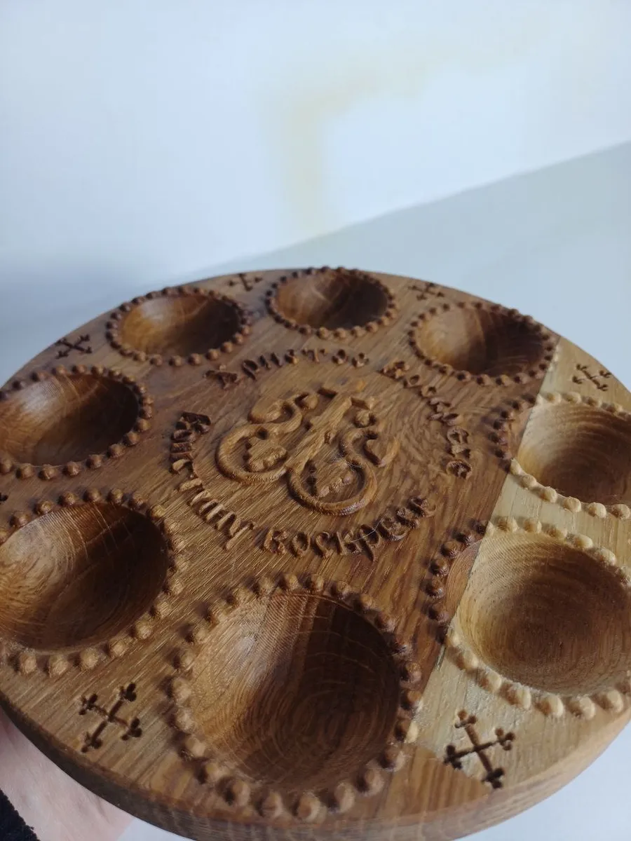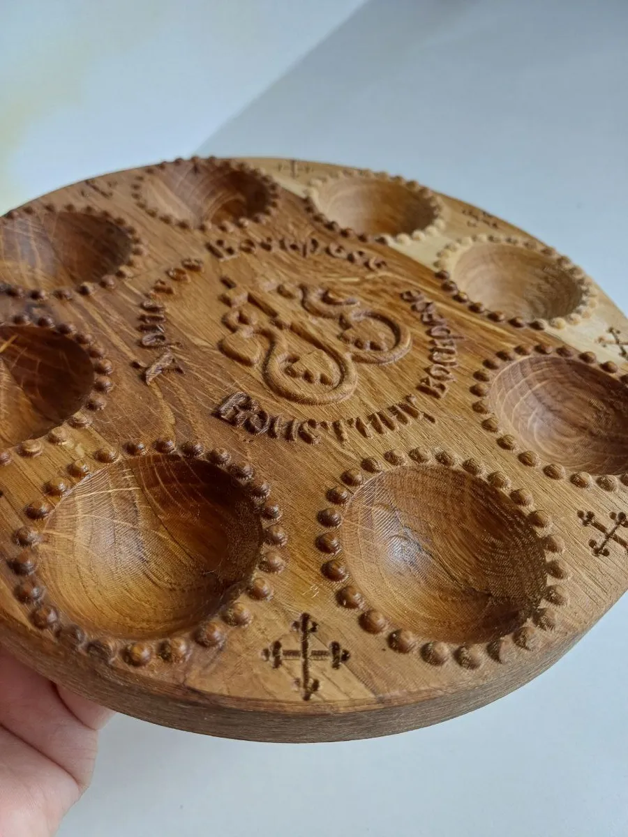 Представьте себе праздничный стол, украшенный этой очаровательной Освященной Тарелкой пасхальной для яиц. Она станет настоящим украшением вашего праздника, наполняя дом атмосферой тепла и уюта. Выполненная из натурального дерева, тарелка поражает своей изысканной резьбой, которая придает ей неповторимый шарм. Ее бежевый цвет гармонично впишется в любой интерьер, создавая атмосферу весеннего праздника. На этой тарелке ваши пасхальные яйца будут выглядеть особенно нарядно, а сам стол приобретет особый, праздничный вид.