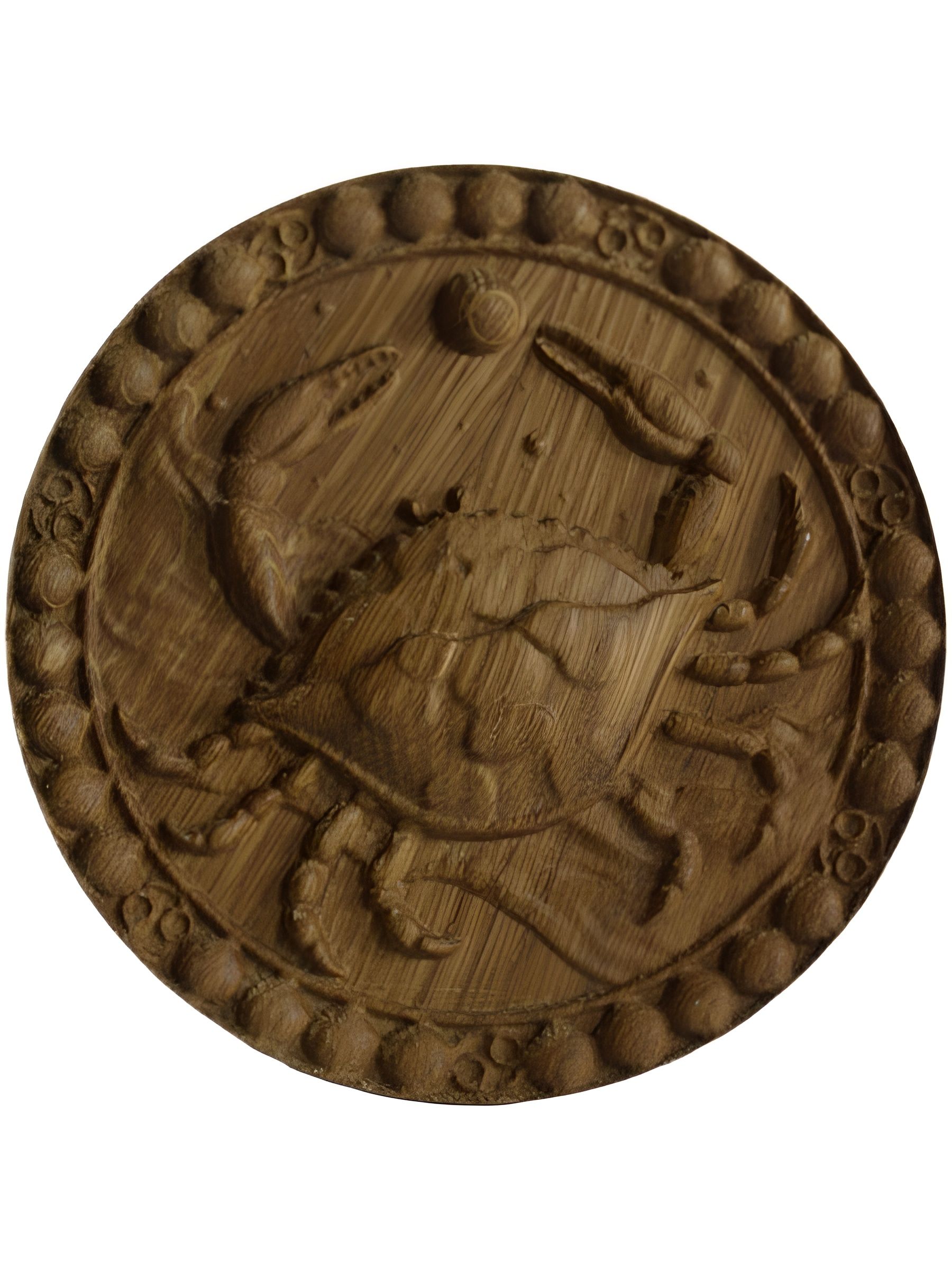 Панно Знаки Зодиака "Рак" резное из массива дуба. Размер (диаметр) 14см.