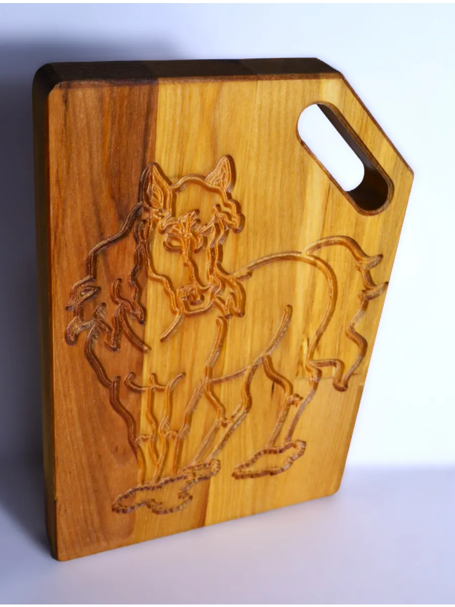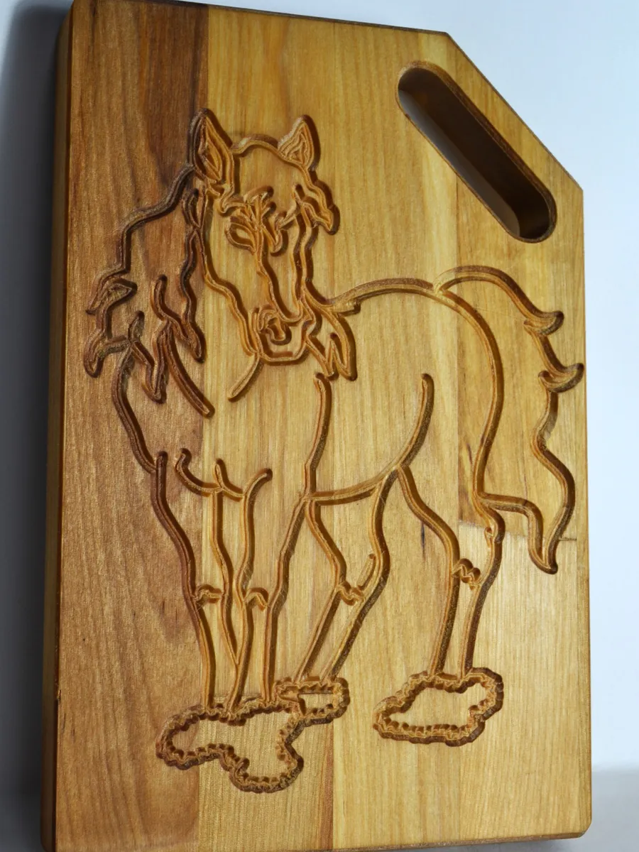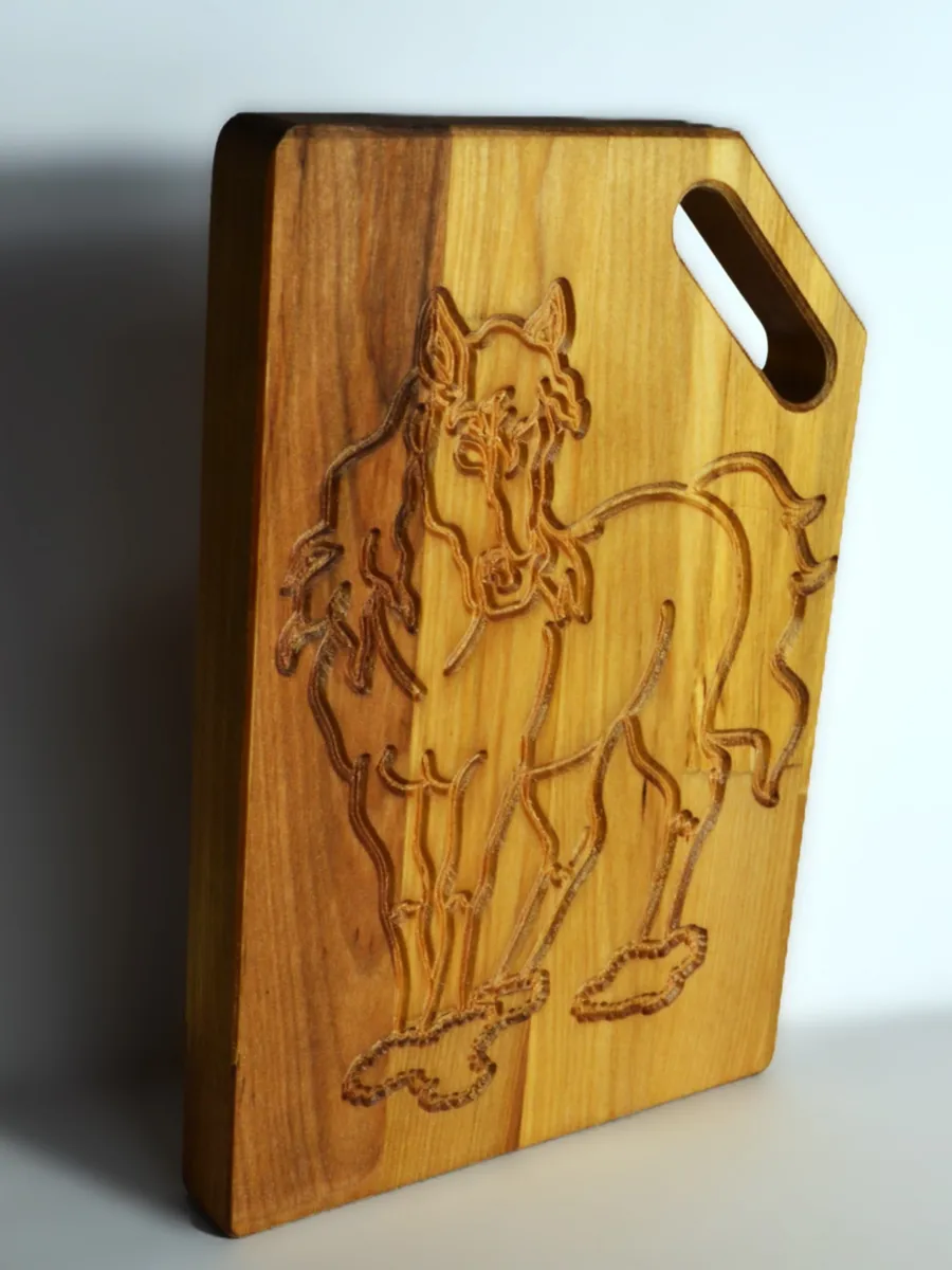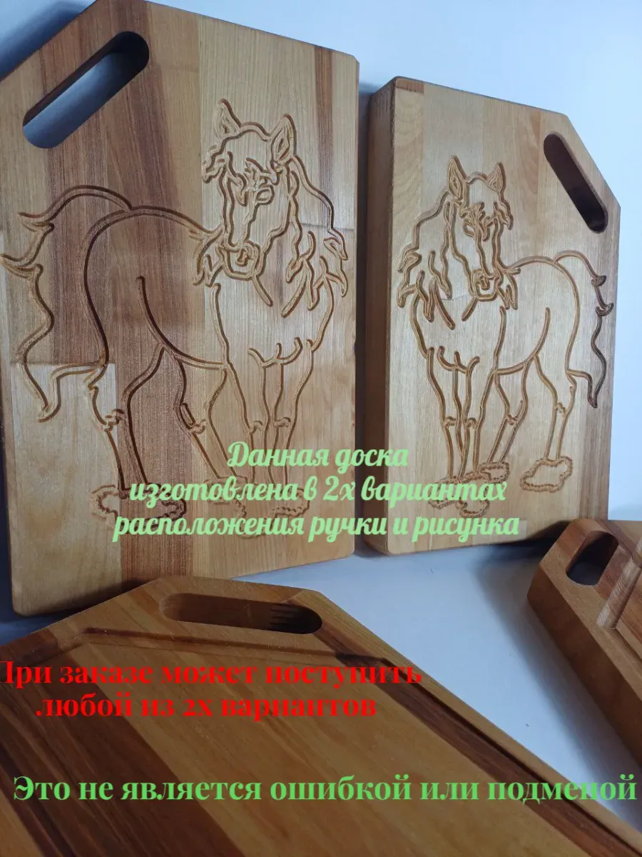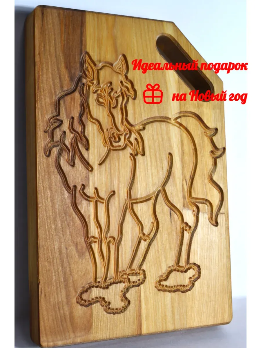 Разделочная доска Лошадь 28.5см х19 см выполненная из массива березы с декоративным рисунком лошади (Символ 2026 года) с одной стороны, и рабочей поверхностью с канавками по периметру - с другой стороны, станет отличным подарком на Новогодние, семейные и любые другие традиционные праздники в Вашем кругу.
