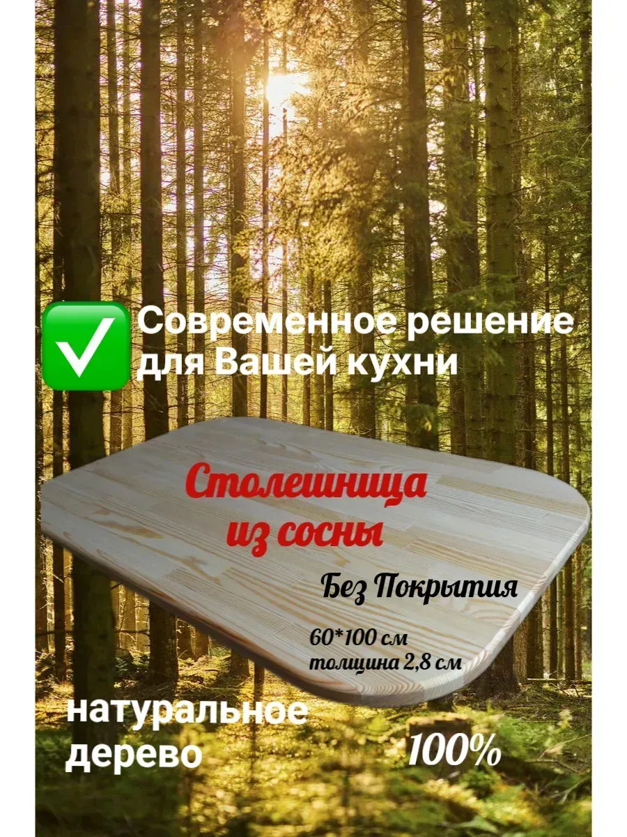 Преобразите свою кухню или рабочее пространство с помощью нашей столешницы из натуральной сосны! Ее теплый, природный цвет и неповторимый рисунок дерева создадут уютную и гостеприимную атмосферу. Изготовленная из массива сосны, столешница отличается прочностью и долговечностью, выдерживая ежедневное использование. Размер 60х100 см идеально подходит для компактных кухонь, обеденных зон или домашних офисов. Эта столешница станет прекрасной основой для создания стильного и функционального пространства, наполненного теплом и естественной красотой. Форма: Овал, закругление углов 150мм, толщина 28мм